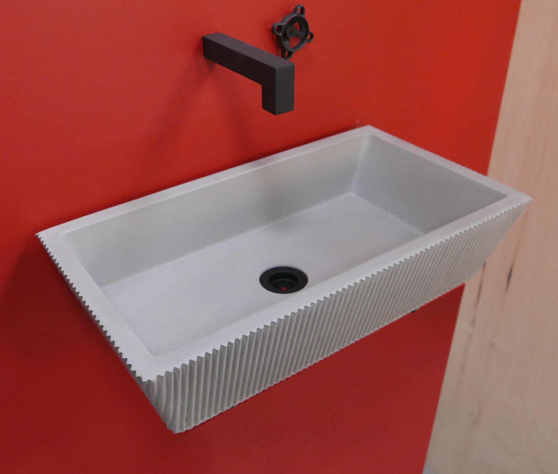 Moving forward from our Flute basin the Slant basin aims to be more wall oriented with the flat back and angled front and sides. The flutes wrap round this slanted form moving from vertical on the front to angled on the sides giving great detail and softness the solid form. Flow lines and colour deviation and surface bobbles all add to enhance the fluted form. The slant basin can be wall hung or placed on a suitable bathroom/washroom surface.